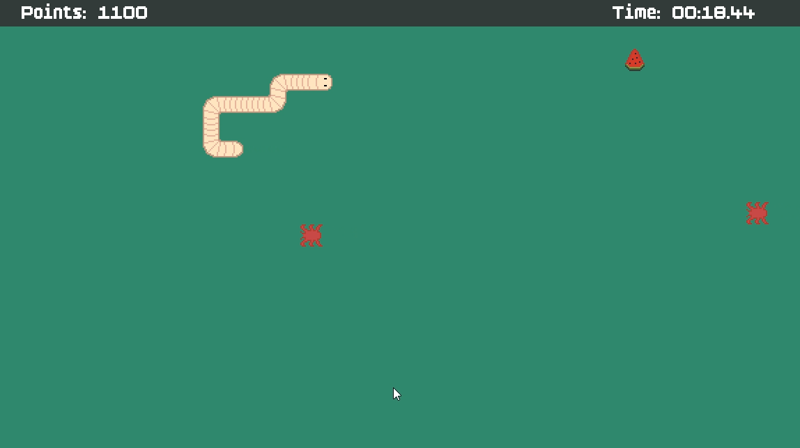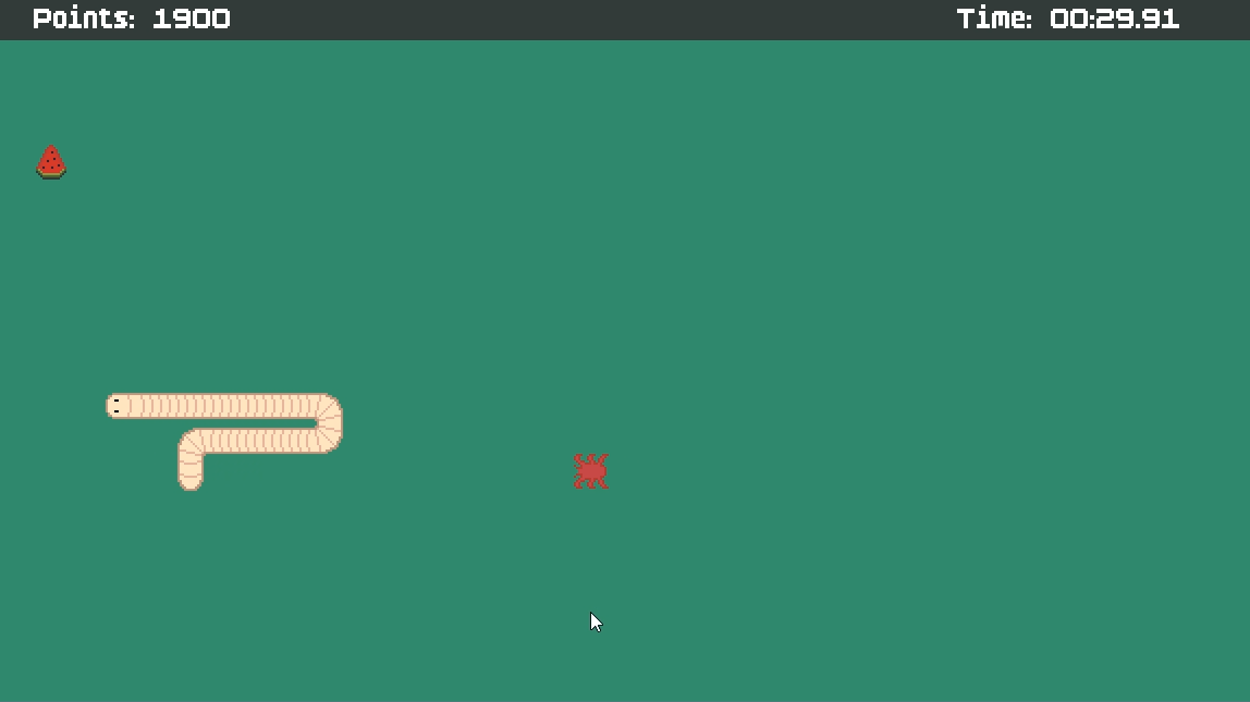 worm is made for the Brainless Mini-Game Jam 2026(my first game jam ever). Its my take on classic snake where, instead of becoming as long as possible, you have to survive for the longest time possible while getting the most amount of points possible in a single life!
